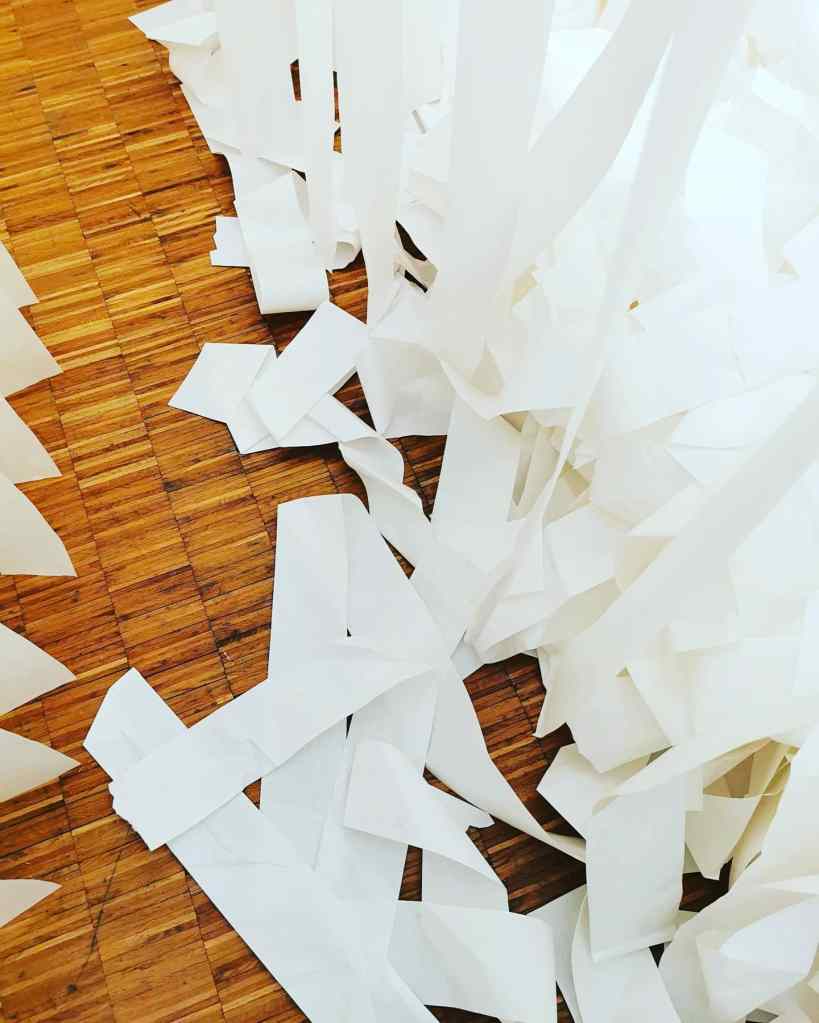 On ne peut pas réellement parler d’expo en fait. C’est plutôt une installation monumentale immersive que propose l’ISELP. Une forêt de papier conçue par l’artiste Gianni Pettena, figure majeure de l’Architecture radicale italienne.