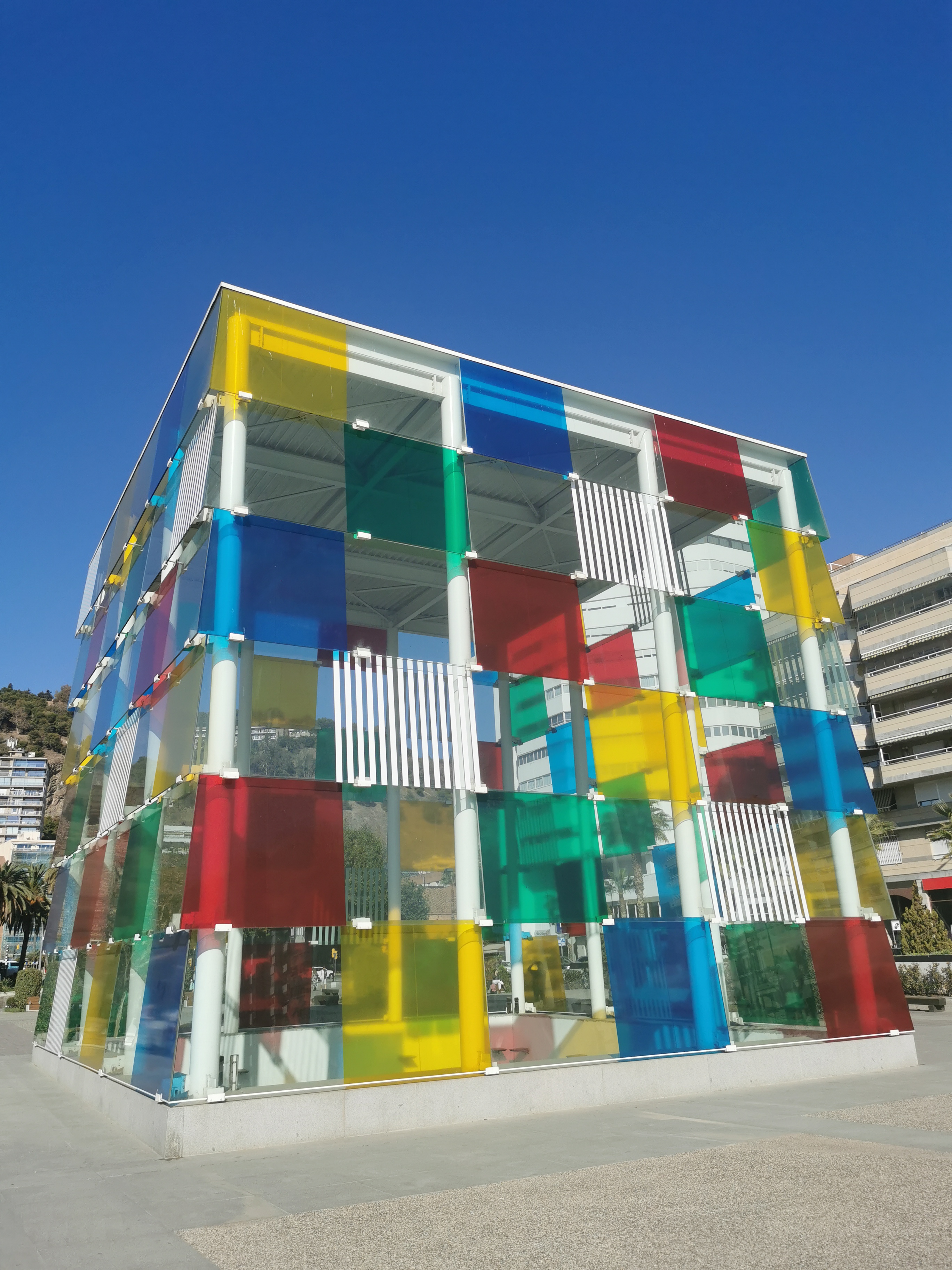 Le Centre Pompidou Malaga est situé sur le port de plaisance de la ville. On le reconnait grâce à son cube de verre et d’acier (El Cubo), une œuvre réalisée en 2013 par l’artiste français Daniel Buren.