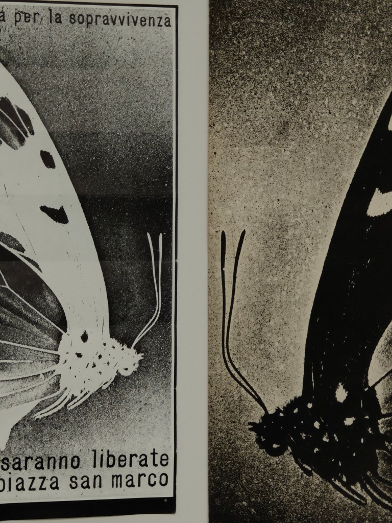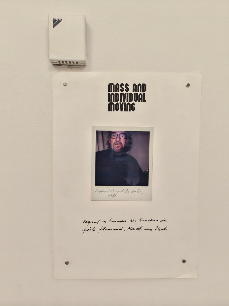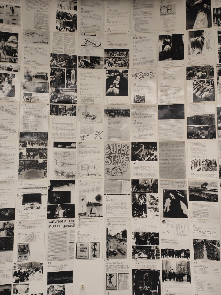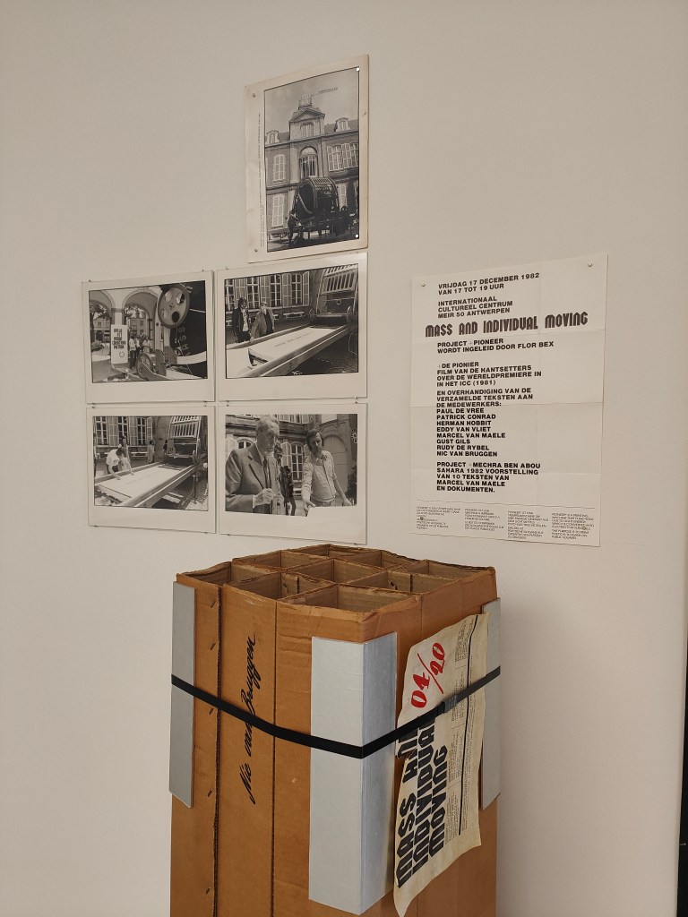 La salle circulaire au rez de chaussée du M HKA a, pour l’occasion, été scindée en deux. Une première moitié fait référence au Mass Moving et présente différentes actions comme « Society in Conflict » (1970), le mensuel « Il fera beau demain », le LEM, Butterfly project (1972), Human Incubation (1973), Pure Water Reserve (1973), Solar Station (1974), Sound Stream.