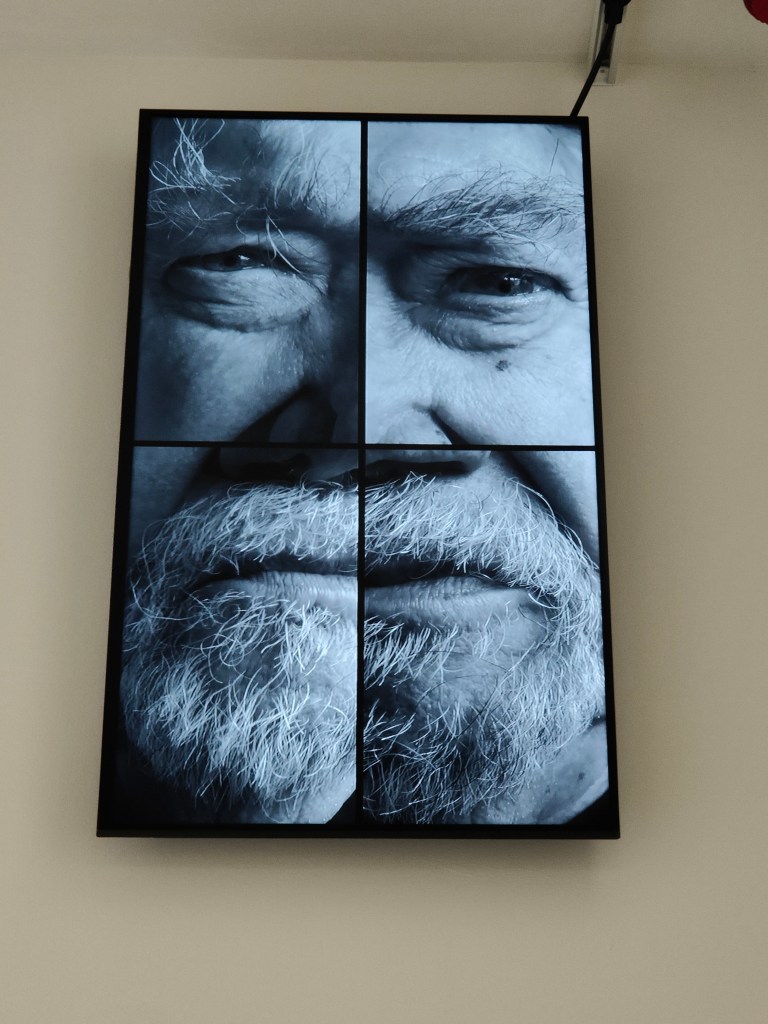 Surplombant le tout, une œuvre de mon frère : « Vader, 2016, Quatre quarts ». De là-haut, notre père observe.